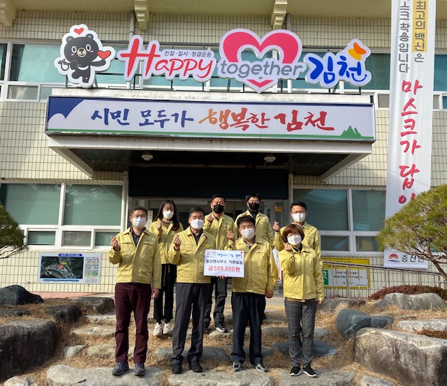 | 증산면사무소 직원들은 지난 29일 읍면동 자치행정평가에서 받은 시상금 50만원을 희망2021 나눔 캠페인에 기탁하였다. 이번 나눔 참여는 직원들의 한해 노력물이 더 따뜻하고 뜻깊은 일에 더해지길 바라며 모두의 마음을 모았다. 김명환 증산면장은 “작은 정성이지만 어려운 이웃들과의 희망나눔에 동참할 수 있게 기쁘다. 올 한해 모두가 어려운 시기였지만 자기 자리를 잘 지켜준 직원들에게도 감사하며, 코로나19가 빠르게 종식될 수 있도록 우리 직원들이 감염예방수칙에 모범을 보이고 맡은 바 업무에도 최선을 다해 달라.”고 전했다.