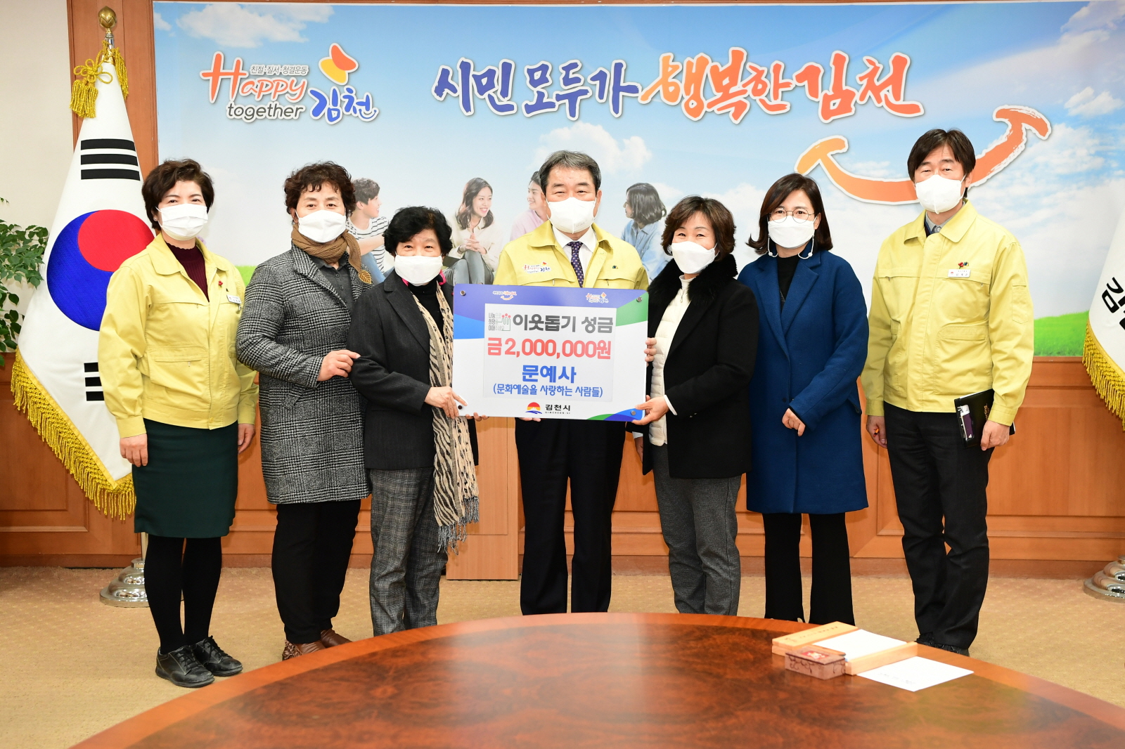 | 문예사(회장 정해선)는 지난 28일 김천시청을 방문하여 이웃돕기 성금 200만원을 기탁했다.