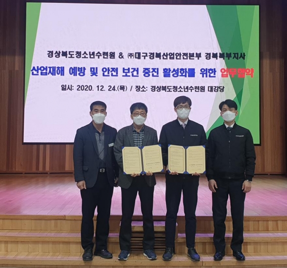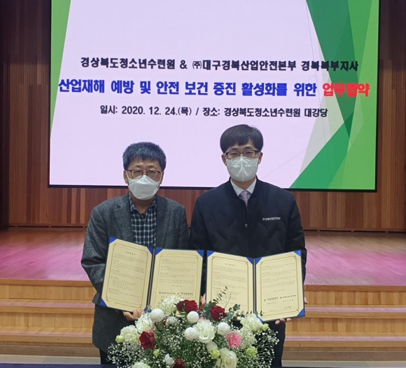 | 경상북도청소년수련원(원장 조경래)은 지난 24일 대구경북산업안전본부 경북북부지사(지사장 이동수)와 산업재해 예방 및 안전 보건 증진을 위한 업무협약을 체결했다고 밝혔다.
