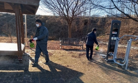 감문면 주민자치위원회 회원 10여명이 참여한 가운데 관내 버스정류장, 배시내 식당가을 포함, 면내 다중이용시설에 대한 방역을 실시하였으며, 마을 주민들을 대상으로 안전예방수칙 홍보를 병행하였다.