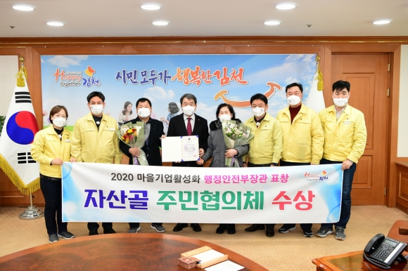 | 김천시(시장 김충섭)는 자산골 주민협의체(위원장 이정길)가 마을기업 육성 및 발전 유공을 인정받아 행정안전부장관 표창을 수상했다고 8일 밝혔다.