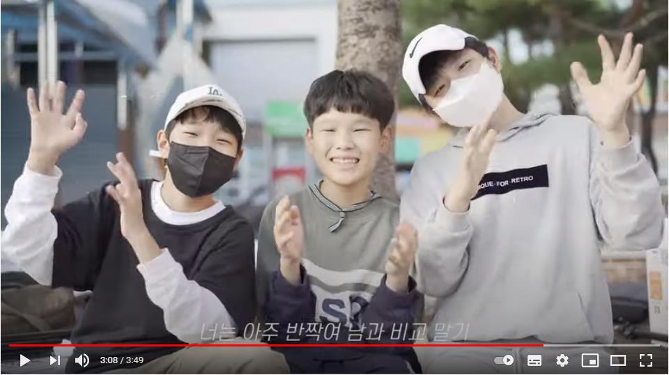 대상 3팀은 동영상 부문, 구미 옥계동부초(교장 양춘희) 5학년 구나원, 배준우, 이가언, 김세민, 6학년 김다인, 강건모, 김도영, 서준서, 황지효 학생(지도교사 김도헌)이 ‘미나리(미래에서 들려오는 목소리)’라는 작품으로 가정에서나 학교에서 무관심한 나에게 미래에서의 ‘나의 목소리’가 들려주는 칭찬의 말이 용기가 되었음을 ‘랩’으로 표현했다.