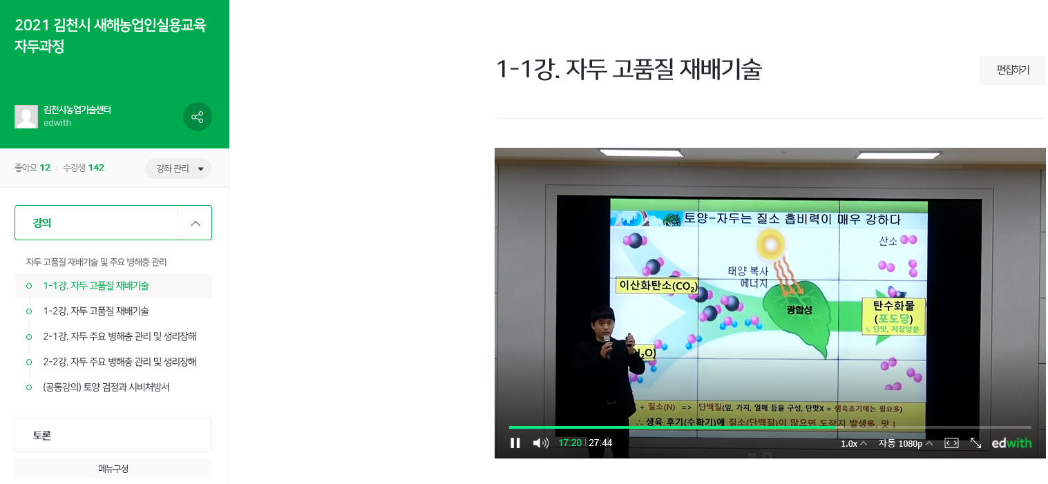 | 김천시(시장 김충섭)는 지난해 11월 중순부터 이어진 코로나-19의 3차 대유행에 대응하여 2021년 김천시 새해농업인 실용교육을 인터넷 강좌 프로그램을 활용한 온라인 퀵서비스 교육으로 전환하여 실시하고 있다.