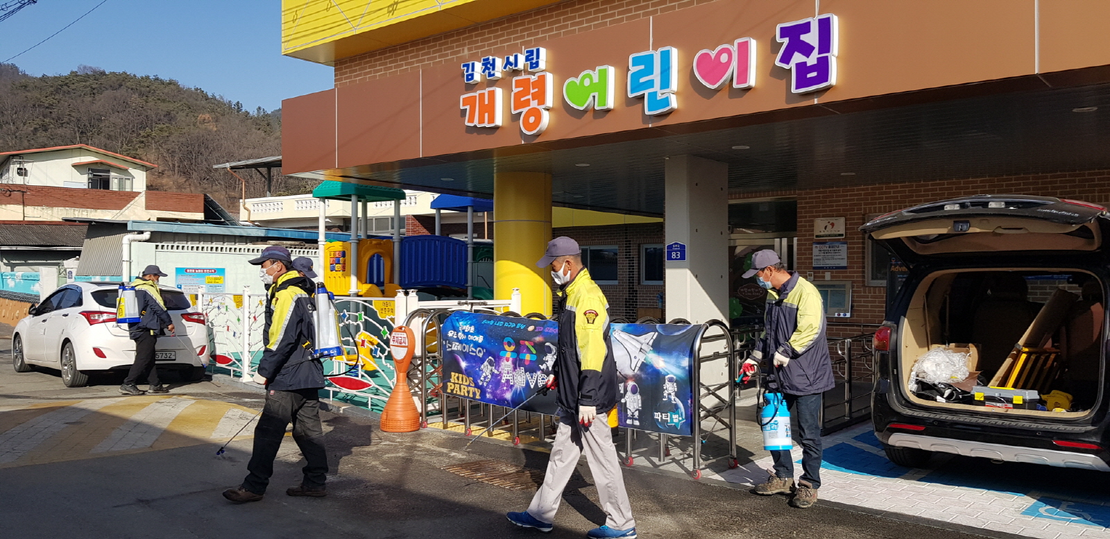 이번 방역은 개령면의용소방대원 10여명이 참여한 가운데 주요 공공기관, 음식점, 버스정류장 등 불특정 다수가 이용하는 곳을 중심적으로 실시하였으며, 대원들은 압축식분무소독기를 이용하여 구석구석 꼼꼼히 소독을 하였다.