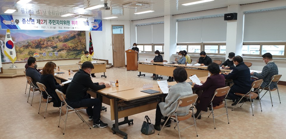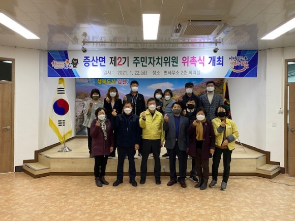 김명환 증산면장은 “제2기 주민자치위원회 위원들께 축하와 감사의 말씀을 드리며, 주민자치활동 강화와 주민의 복지증진을 위해 정주억 위원장님을 중심으로 소통·화합하여 지역에 대한 자발적 고민과 실천을 부탁드린다.”고 전했다.