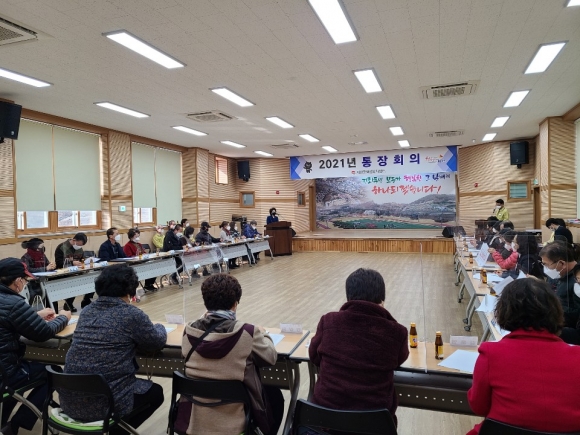 회의에 참석한 통장들은 저마다 우직하고 부지런한 소처럼 2021년 신축년 「시민 모두가 행복한 김천」, 「Happy together 김천」을 만드는데 앞장서겠다는 강한 의지를 내비쳤으며, 동 주민센터에서는 코로나19 극복 방역 수칙 준수 홍보, 김천愛 주소 갖기 운동 홍보 등 시정 주요 사항에 대한 협조를 당부했다.