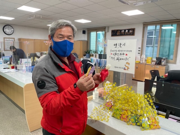 이날 봉계지역 아동센터에서 전달한 복주머니에는 사탕과 같은 주전부리와 정성스럽게 적은 행복을 기원하는 문구들로 채워져 있었다. 행복하세요, 웃으세요 등 고사리 같은 손으로 써넣은 문구와 사탕을 받은 이웃들과 봉산면사무소 직원들은 미소로 하루를 보낼 수 있었으며, 아이들의 작은 정성에서 「happy together 김천 운동」이 결코 먼 곳에 있지 않음을 다시 한번 생각할 수 있는 시간을 가질 수 있었다.