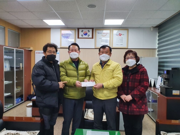 | 어모면 번영회(회장 장재욱)에서 지난 1월 26일 어모면사무를 방문해 지난 1년간 정성껏 모은 돈으로 불우이웃돕기 성금(100만원)을 전달했다.