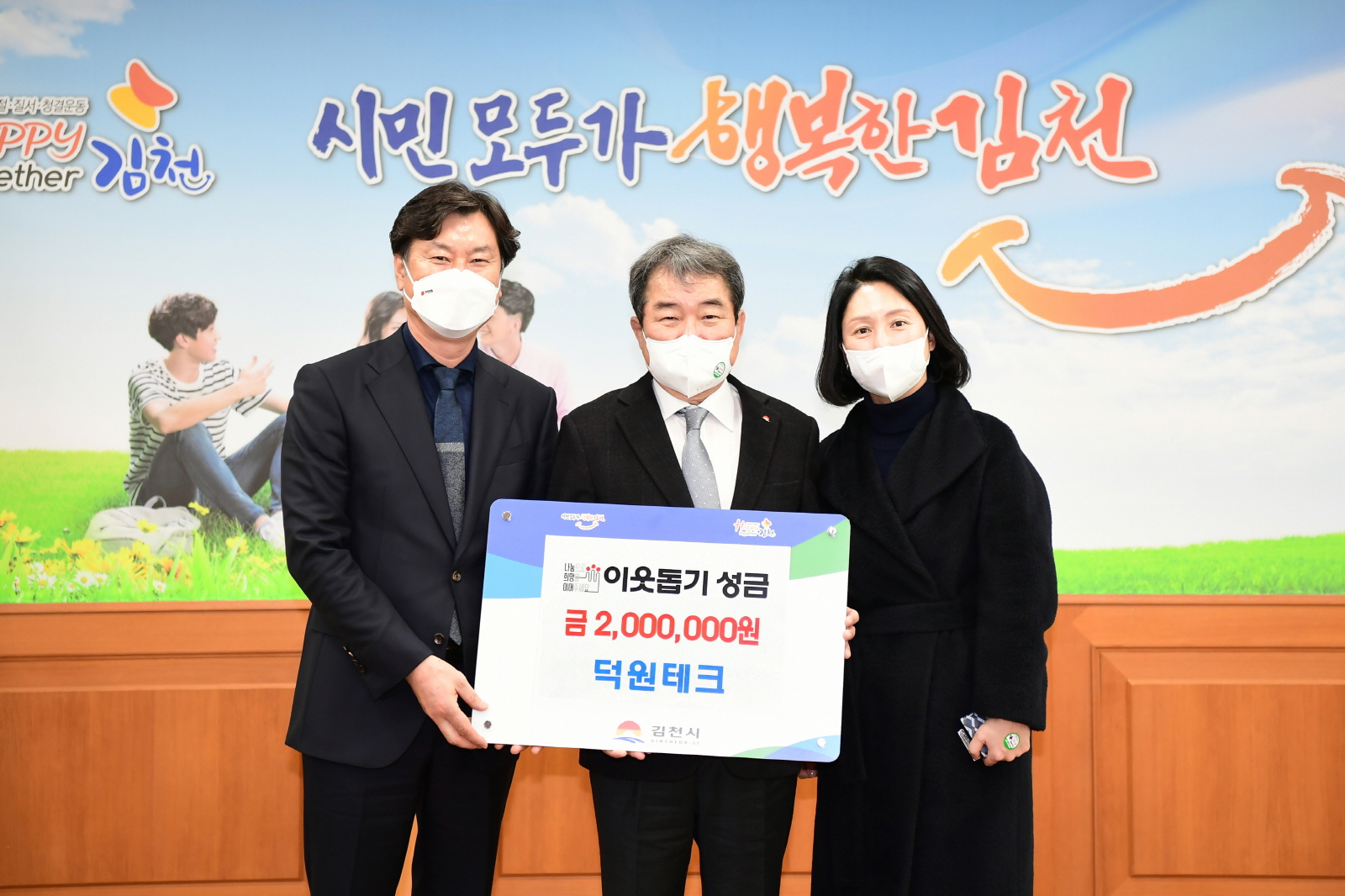 한편, 김천시 아포읍에 소재한 덕원테크는 가로등, 전기판넬 등 조명관련 전기자재를 생산하는 제조업체로 지난해에도 200만원의 성금을 기탁하는 등 지속적으로 나눔을 실천하고 있다. |