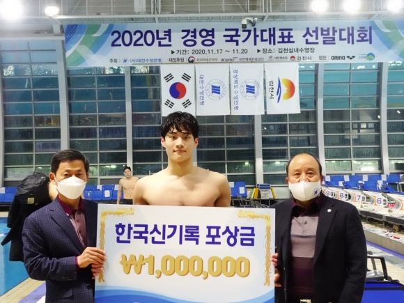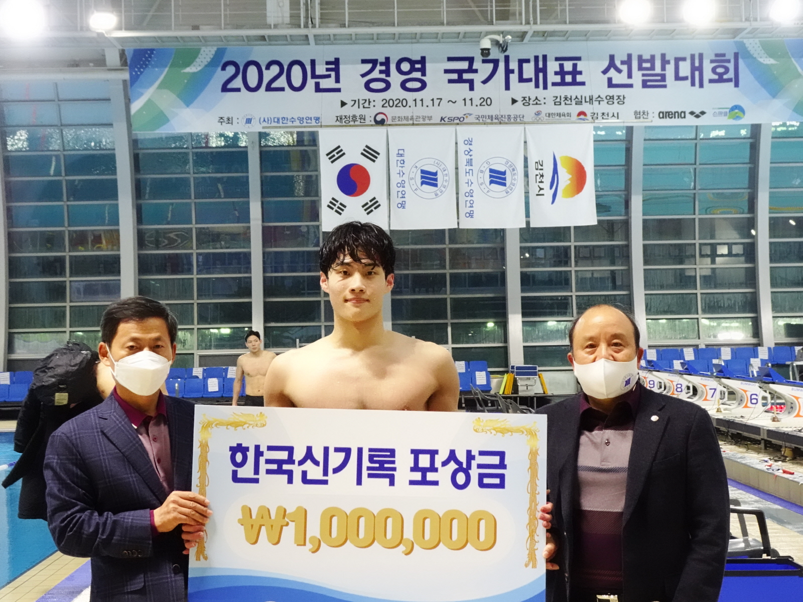 | 지난해 김천실내수영장에서 개최된 ‘2020 경영 국가대표 선발대회’ 자유형 200m에서 황선우(서울체고)선수가 기록한 1분49초92의 기록이 FINA(세계수영연맹)에서 세계주니어기록으로 공식 인증을 받았다.