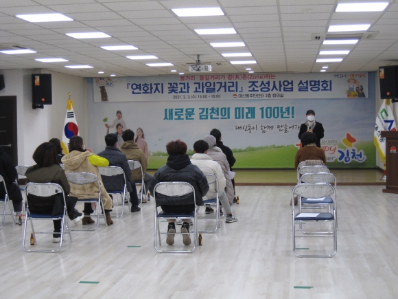 | 김천시(시장 김충섭)는 연화지 꽃과 과일의 거리 조성사업에 대한 사업 설명회를 2월 3일 15시부터 대신동 주민센터 2층 회의실에서 개최하였다.