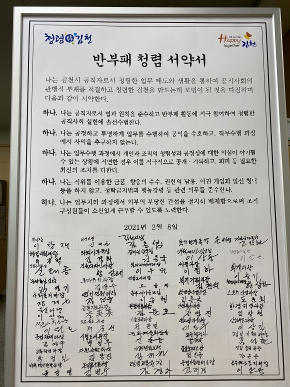 대책협의회는 ‘2021년도 김천시 청렴도 향상 종합계획’을 공유하며 2개월마다 청렴도 향상 대책 추진상황을 점검하고 추진결과를 평가한다.