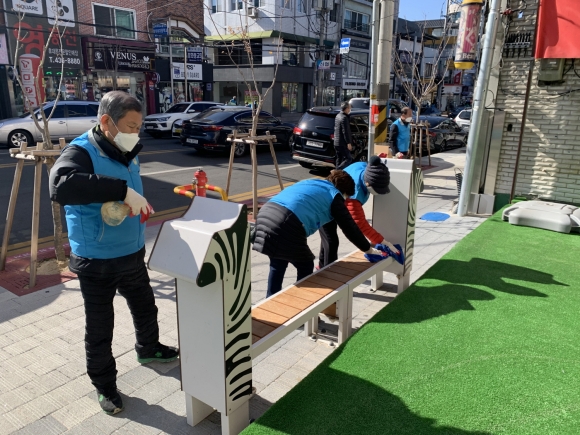 코로나19 3차 대유행이 점차 안정세를 보이고 있지만 설 명절을 앞두고 코로나19 재확산에 대한 주민들의 불안감이 커지는 가운데 이번 방역활동에는 통장협의회(회장 허은)와 평화시장 상인회(회장 김한규)가 나섰다.