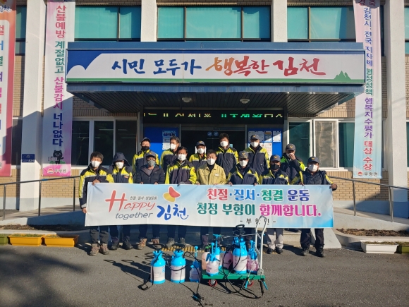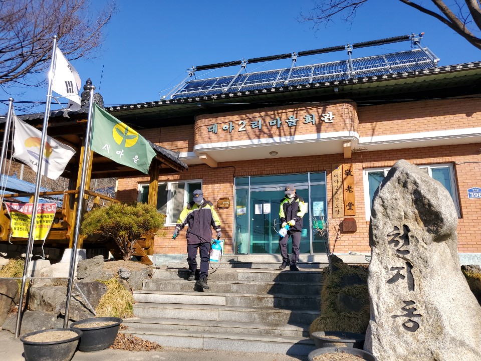 | 부항면 의용소방대(대장 신춘식)는 2월 19일(금) 대원 18명이 참여한 가운데 버스승강장 27개소, 마을회관 및 경로당 26개소, 운동기구 등의 다중이용시설을 중심으로 봄맞이 집중 방역을 실시했다.