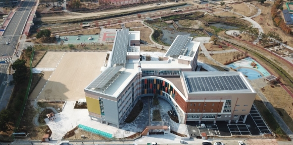 이 중 칠곡 석적중학교는 부지면적 13,071㎡, 지하1층, 지상4층 규모로서 특히, 학생 통학로의 안전확보를 고려한 지하주차장을 설치해 주차공간을 최대한 확보했다.