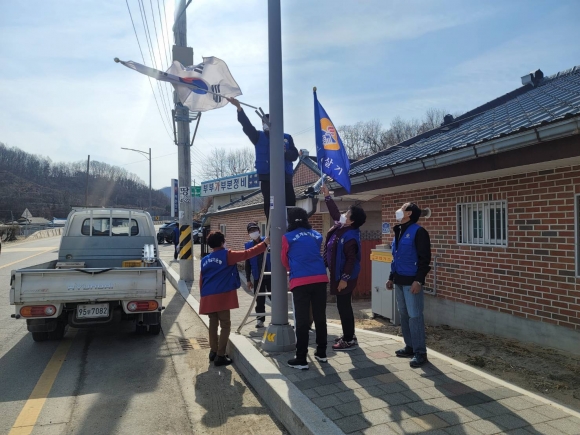 | 김천시 어모면 바르게살기협의회(회장 윤상분)에서는 2월 26일(금) 삼일절을 맞아 나라사랑 태극기달기 운동을 전개했다.