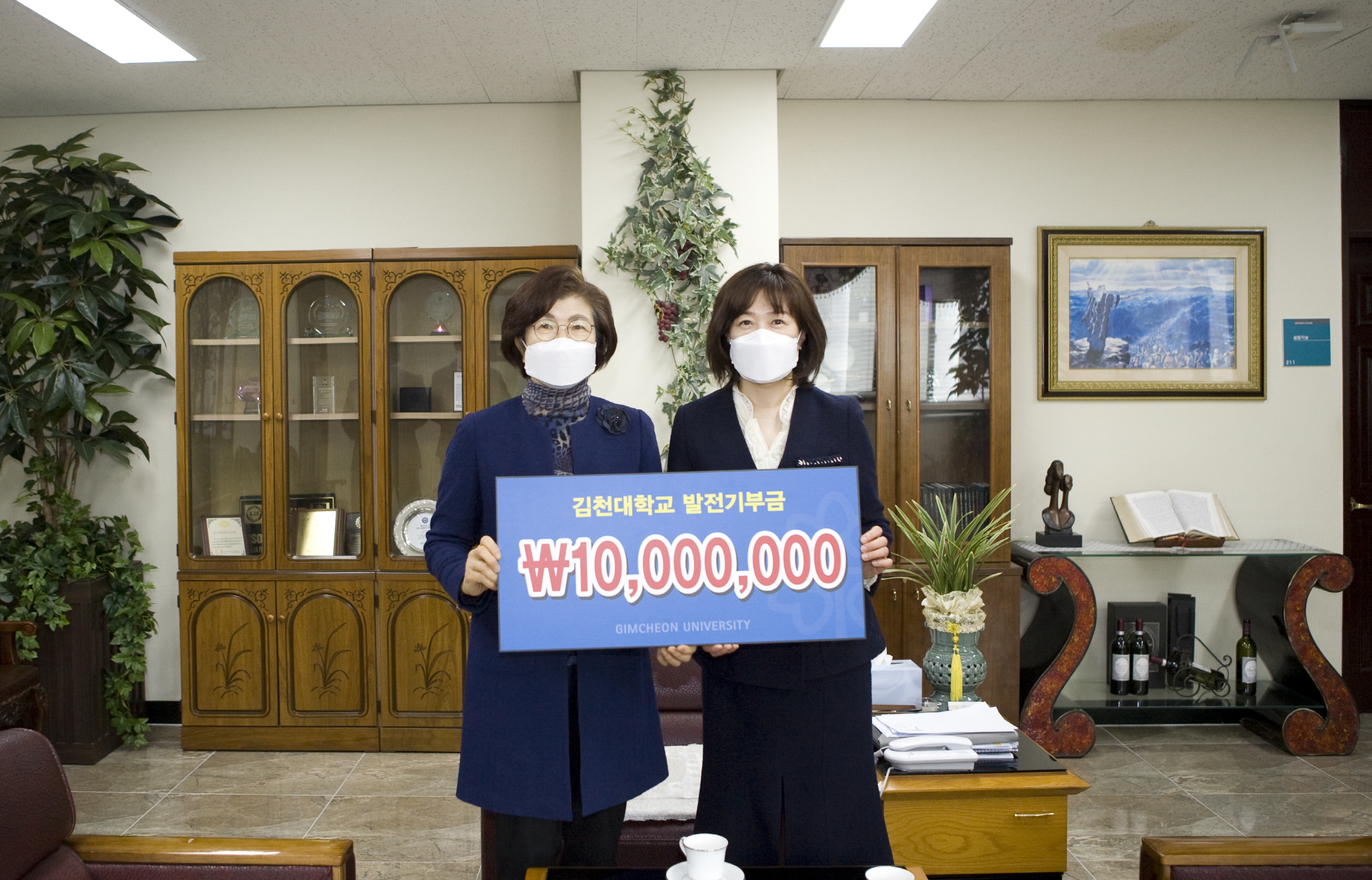 김천대학교 윤옥현 총장은 “코로나19로 인한 어려운 환경 속에서 김천대학교에 장학금을 기부하기로 약정해준 ㈜코앤엠 관계자에게 감사의 인사를 전하며, 기탁해주신 소중한 기부금은 지역발전에 보탬이 되는 인재 육성을 위해 꼭 필요한 곳에 쓰겠다. 앞으로도 김천대 학생들이 발전하는 모습을 관심을 갖고 지켜봐 달라.”고 했다.