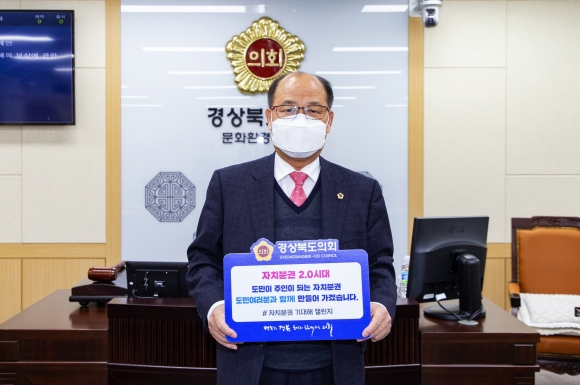 | 경상북도의회 박판수 의원은 3월 10일에 자치분권 2.0시대 개막을 응원하기 위해 ‘자치분권 기대해 챌린지’에 동참했다.