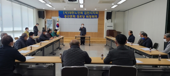 | 김천시 증산면 노인회(분회장 전승철)는 10일(수) 시루메권역 주민복지센터에서 대한노인회 김천시지회 증산분회 회장 및 경로당회장 16명이 참석한 가운데 21년 1분기 회의를 개최하였다. 코로나19 영향으로 사회적거리두기, 소모임 금지 등으로 장기간 회의를 개최하지 못한 가운데 당면한 현안 사항을 추진하기 위하여 회의를 개최하게 되었다.