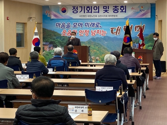 | 김천시 대덕면 노인회(분회장 이산걸)는 12일 대덕면사무소 3층 강당에서 노인회 총회를 개최하였다. 코로나 19로 한동안 회의를 개최하지 못하였으나, 노인회 결산사항과 당면사항을 전달하기 위하여 이번 회의를 추진하였다. 회의를 통해 건조한 봄철 산불 예방에 대한 논의, 사회적 거리두기 1.5단계 연장 등 행정사항을 전달하였다.