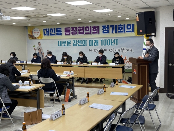 | 김천시 대신동 통장협의회는 지난 3월 12일 대신동 행정복지센터 2층 회의실에서 전제등 대신동장, 김남규 통장협의회장 및 대신동 각 통장 등이 참석한 가운데 2021년 첫 대면회의를 개최했다.