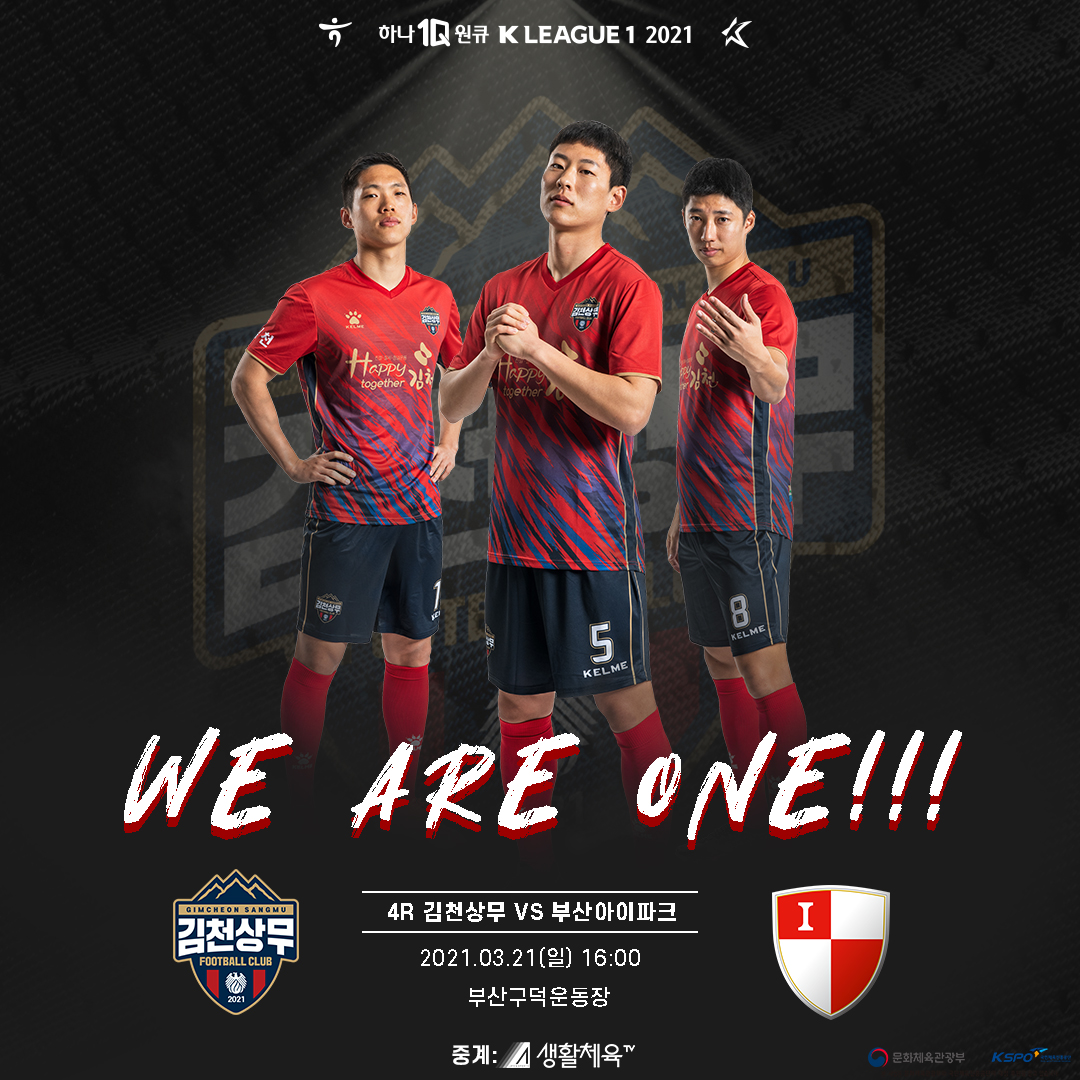 김천상무프로축구단(대표이사 배낙호)이 오는 21일(일) 오후 4시 부산구덕운동장에서 부산아이파크와 ‘하나원큐 K리그2 2021’ 4R 원정 경기를 치른다. 지난 3R 대전하나시티즌을 꺾고 첫 승을 거둔 만큼 부산을 꺾고 연승을 이어간다는 각오다.