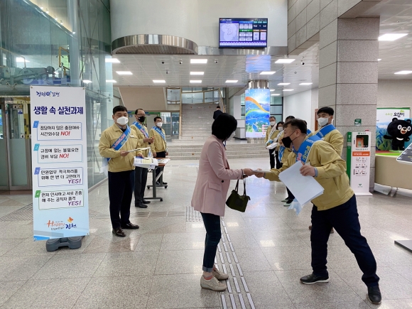 | 김천시(시장 김충섭)는 지난 19일부터 청렴한 공직사회 조성을 위해 전 직원이 참여하는 생활 속 청렴 실천운동을 전개해나가고 있다.
