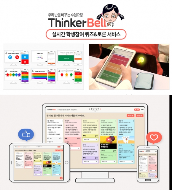 띵커벨 Pro는 교사와 학생이 실시간으로 퀴즈를 풀고, 토론을 할 수 있으며, 교사가 학급 보드(게시판)를 생성하여 게시글을 올리고 댓글을 주고받는 실시간 쌍뱡향 협동학습도 지원한다. 또한 한글·워드·PPT ·PDF 등 다양한 형태의 학습 자료를 첨부할 수 있으며, 유튜브 영상이나 링크를 삽입할 수 있다.