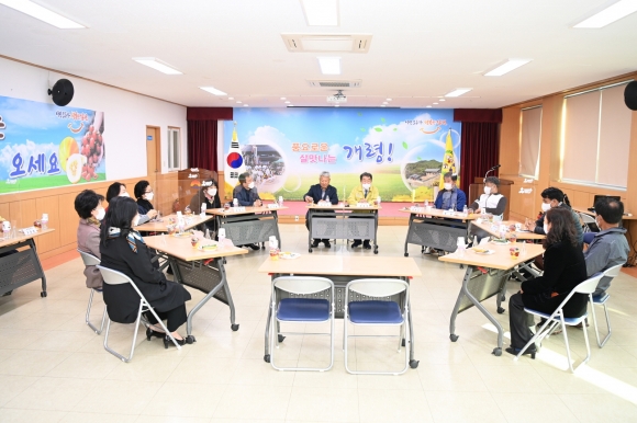 특히 현장 점검을 마친 후 개령면사무소 2층 회의실에서 진행된 간담회에서는 감문국 이야기나라 활성화를 위한 아이디어와 지역 사회와의 연계를 위한 다양한 의견을 나누었으며 사업의 준공에 따른 지역 경제 활성화에도 많은 기대감을 보였다.