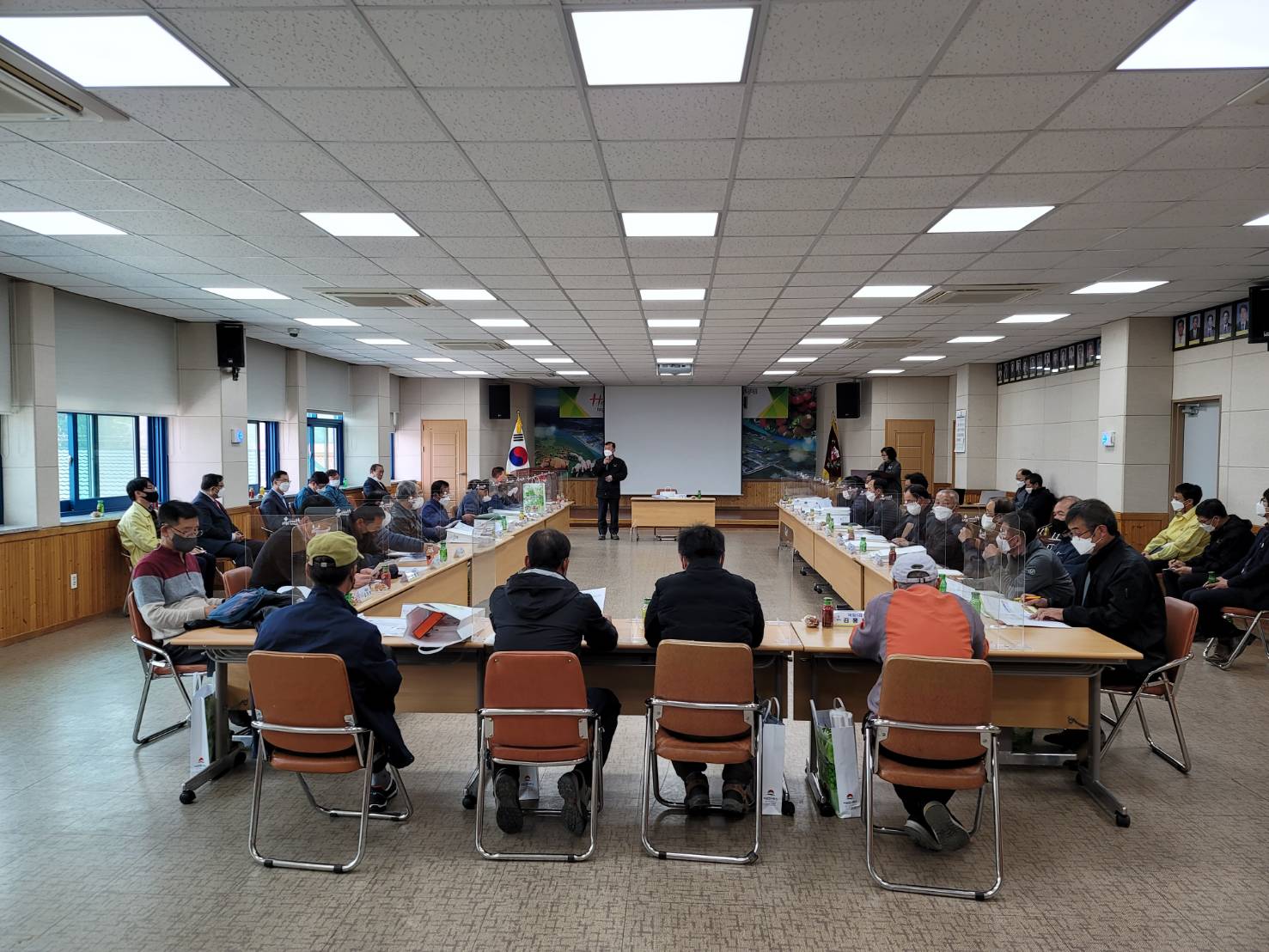 이번 이장회의는 코로나19 예방을 위한 손 소독, 마스크착용, 발열체크, 칸막이 설치 등 방역수칙을 준수하며 진행됐으며, 현안사항인 공익형 직접지불금, 포장재 지원사업, Happy together 김천운동 등의 전달과 더불어 75세 이상(46.12.31. 이전출생자) 백신접종 이 중점적으로 다뤄졌다.