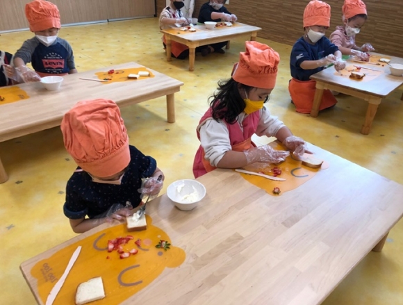 먼저 체험학습이 이루어지기 전 바깥놀이터에 미니딸기하우스를 설치하여 유아들이 딸기의 성장과정을 가까이서 관찰할 수 있도록 하였다. 딸기체험은 코로나19 예방을 위해 활동 전 손씻기를 철저히 하였으며 유아 간 거리 간격을 두어 안전하게 진행되었다. 사전활동으로는 딸기와 관련한 도서, 영상과 같은 시각 매체를 함께 보며 이야기 나누어 딸기체험에 대한 흥미도를 높였으며 이후엔 실제 딸기를 관찰해 보았다. 또한 딸기를 사용해 꽃잎반(만 5세)은 샌드위치, 잎새반(만 4세)은 요플레, 새싹반(만 3세)은 주스 만들기를 하였으며 자신의 요리를 직접 먹어보는 시간도 가졌다. 딸기체험이 끝난 후에는 유아당 딸기 1팩을 가정으로 가져가 가정에서도 가족과 함께 요리활동이 이루어질 수 있도록 하였다.