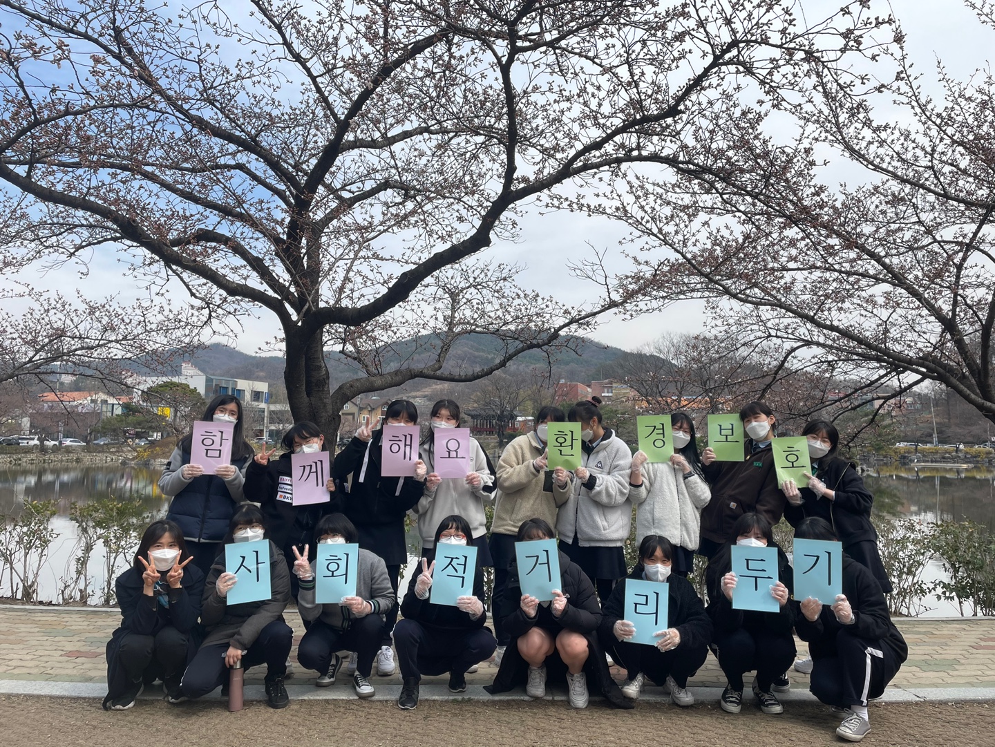 | 한일여자고등학교(교장 이자명) 학생들이 3월 24일과 25일 양일에 걸쳐 학교 주변 및 시민들이 자주 산책하고 휴식을 취하는 연화지(교동)에서 환경 정화 활동과 사회적 거리두기의 실천을 촉구하는 캠페인을 실시하였다