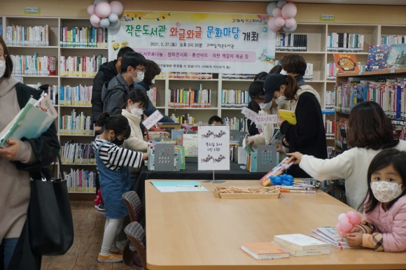 | 김천시립도서관(관장 백선주)은 지난 3월 27일 토요일, 고래실 작은도서관에서 『작은도서관 와글와글 문화마당』을 진행하여 코로나로 지친 심신의 여유를 찾아 동네 작은도서관을 방문한 시민들에게 큰 호응을 얻었다.