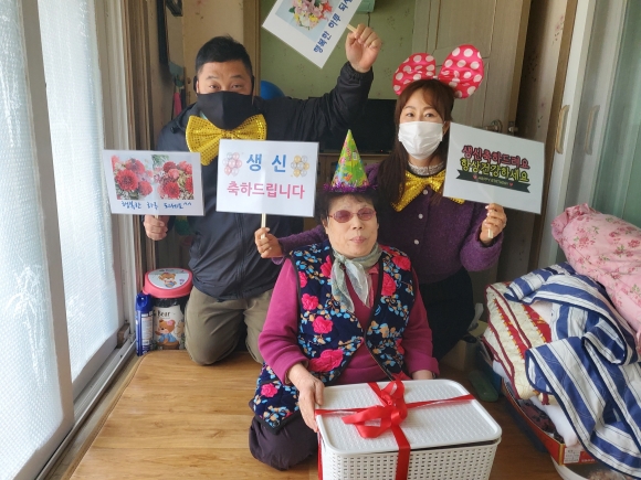 특히 코로나19로 이웃 간에도 소통하기 어려운 시기에 생신을 맞은 어르신과 함께 이야기를 나누며 잠시나마 가족이 되어 드렸다.