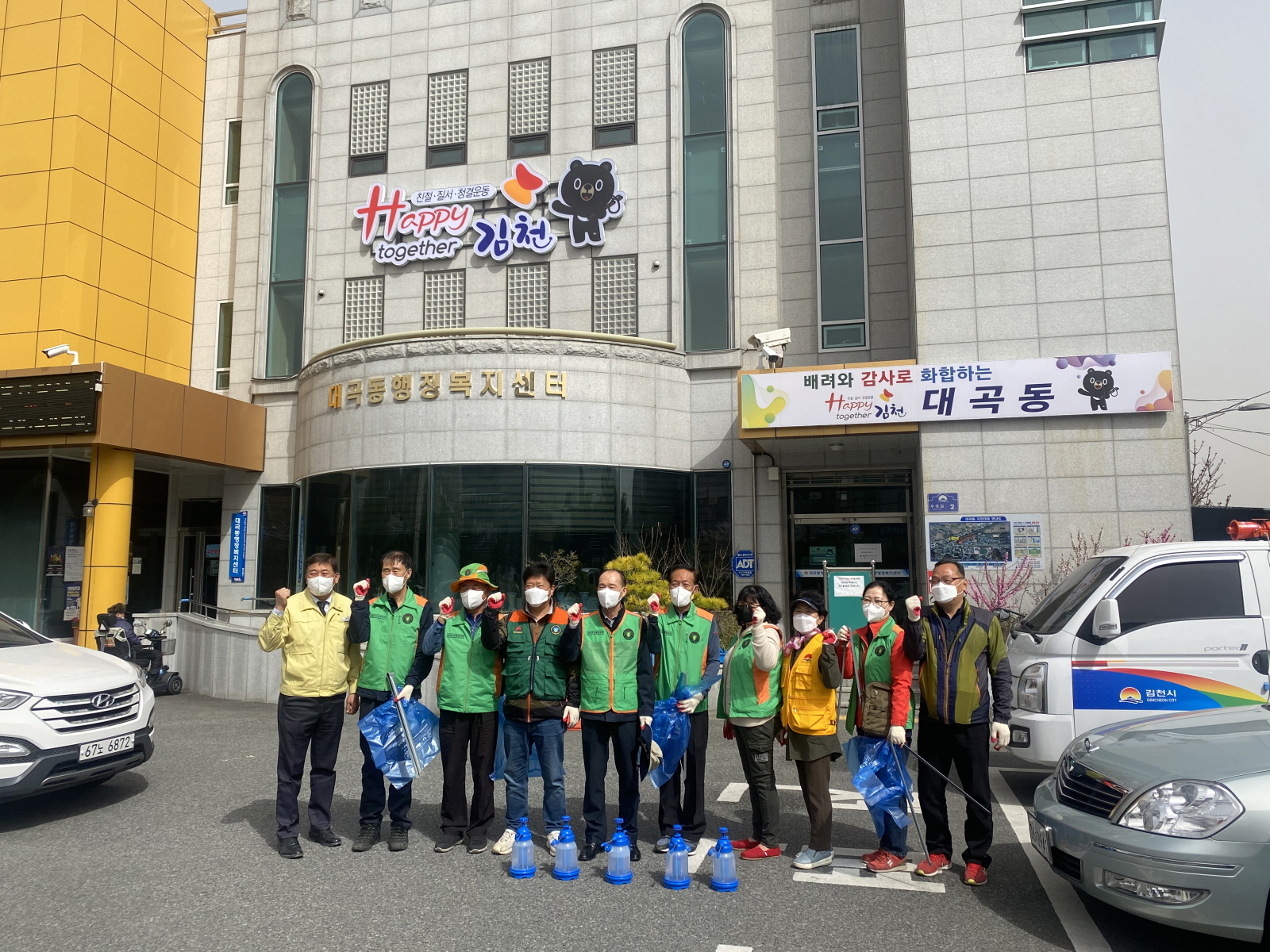 | 지난 3월 29일 부곡맛고을 상가를 중심으로 대곡동 자율방재단(단장 홍순용)이 방역활동과 환경정비활동을 실시하였다.
