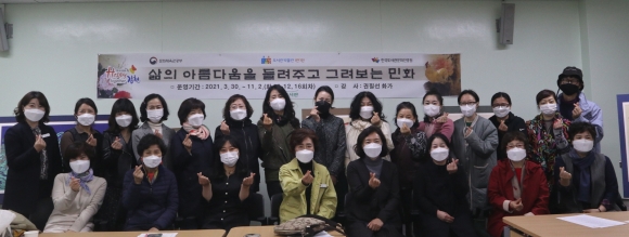 한 참가자는 “처음 그려보는 민화가 어렵고 서툴고 제작에 대한 부담이 클 수 있지만 자신이 그린 민화를 가정에 걸어두거나 가족, 친지에게 선물한다면, 노력과 정성이 깃든 만큼 그 의미가 남다를 것이다”라며 큰 기대감을 드러냈다.