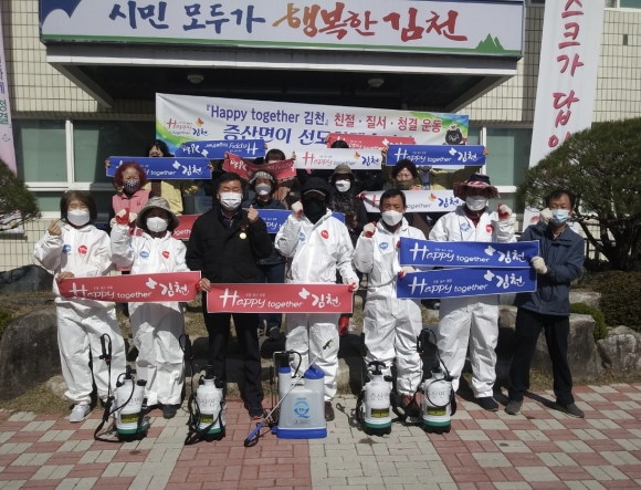 | 김천시 증산면(면장 김명환) 귀농귀촌연합회(회장 김정옥)에서는 최근 사회적 거리두기 1.5단계 연장과 함께 코로나-19 확산 방지를 위해 관내 방역취약지역에 일제 소독을 실시하였다.