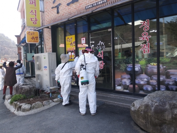 이날 회원 20여명은 방역장비를 착용하고 농협, 우체국, 버스승강장 등 불특정 다수인이 자주 이용하는 시설들을 중심으로 광범위하게 감염예방 방역활동을 펼쳤다.