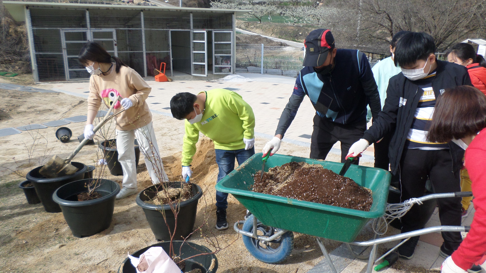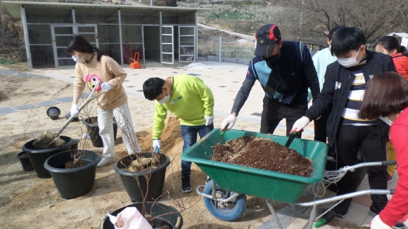| 지난 3월 30일 조마초등학교 1~6학생들은 교과 활동 시간을 이용하여 작은 학교 자유학구제 특색 프로그램 중 하나인 블루베리 나무 심기 활동을 하였다.