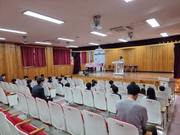 | 김천부곡초등학교(교장 김경숙)는 3월 30일 본교 시청각실에서 학교 운동부를 대상으로 학교장 간담회를 실시하였다. 이번 간담회는 거리두기와 안전 수칙을 준수하며 진행되었고, 교장 선생님은 운동부 선수들에게 격려품을 전달하고 격려의 말씀도 전하셨다.