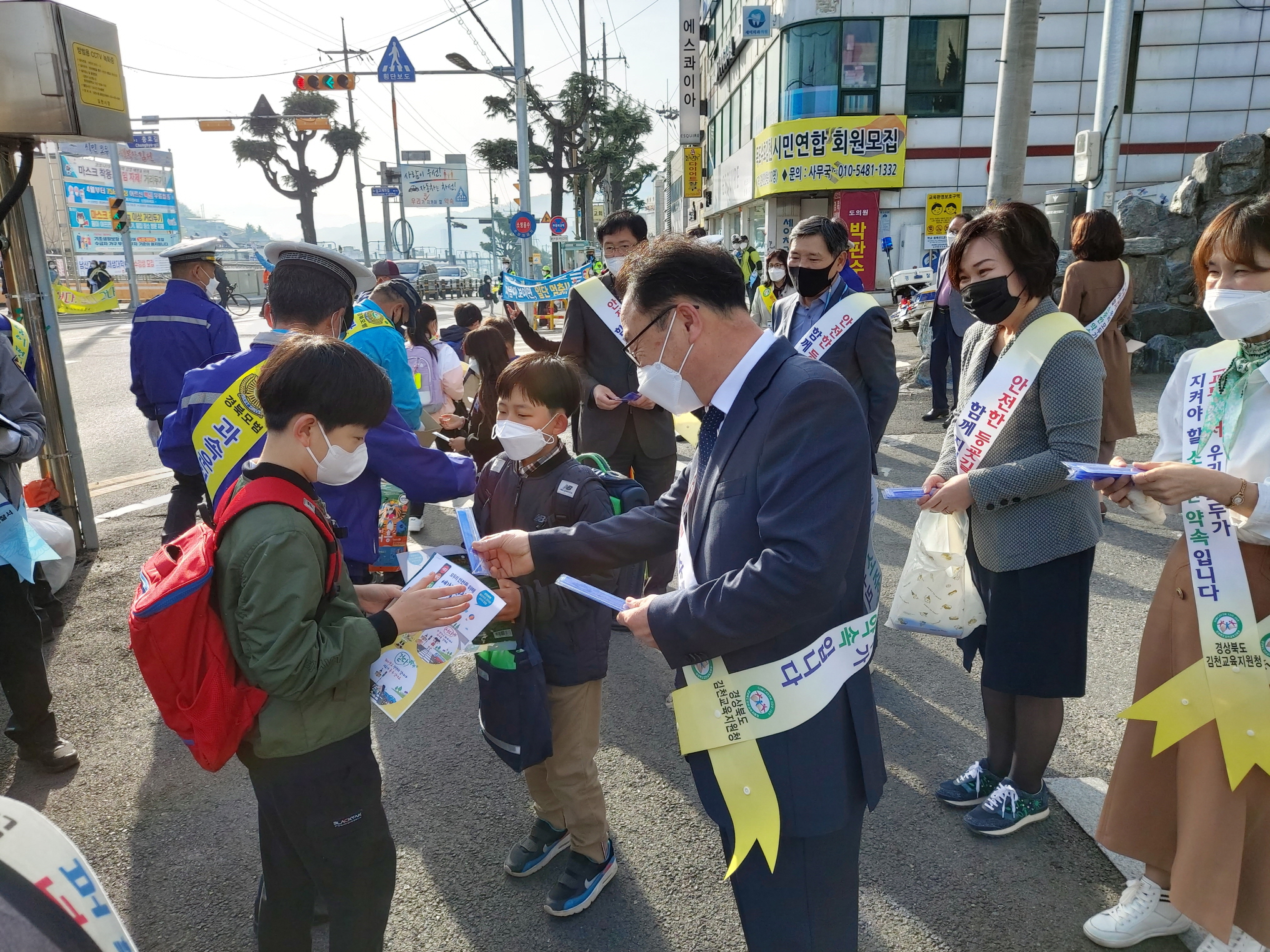 | 김천교육지원청(교육장 박삼봉)은 4월 1일 유관기관과 합동으로 김천중앙초등학교 스쿨존 내 교차로에서 교통사고 없는 안전한 학교를 만들기 위한 ‘스쿨존 교통안전 유관기관 합동 캠페인'을 실시했다.