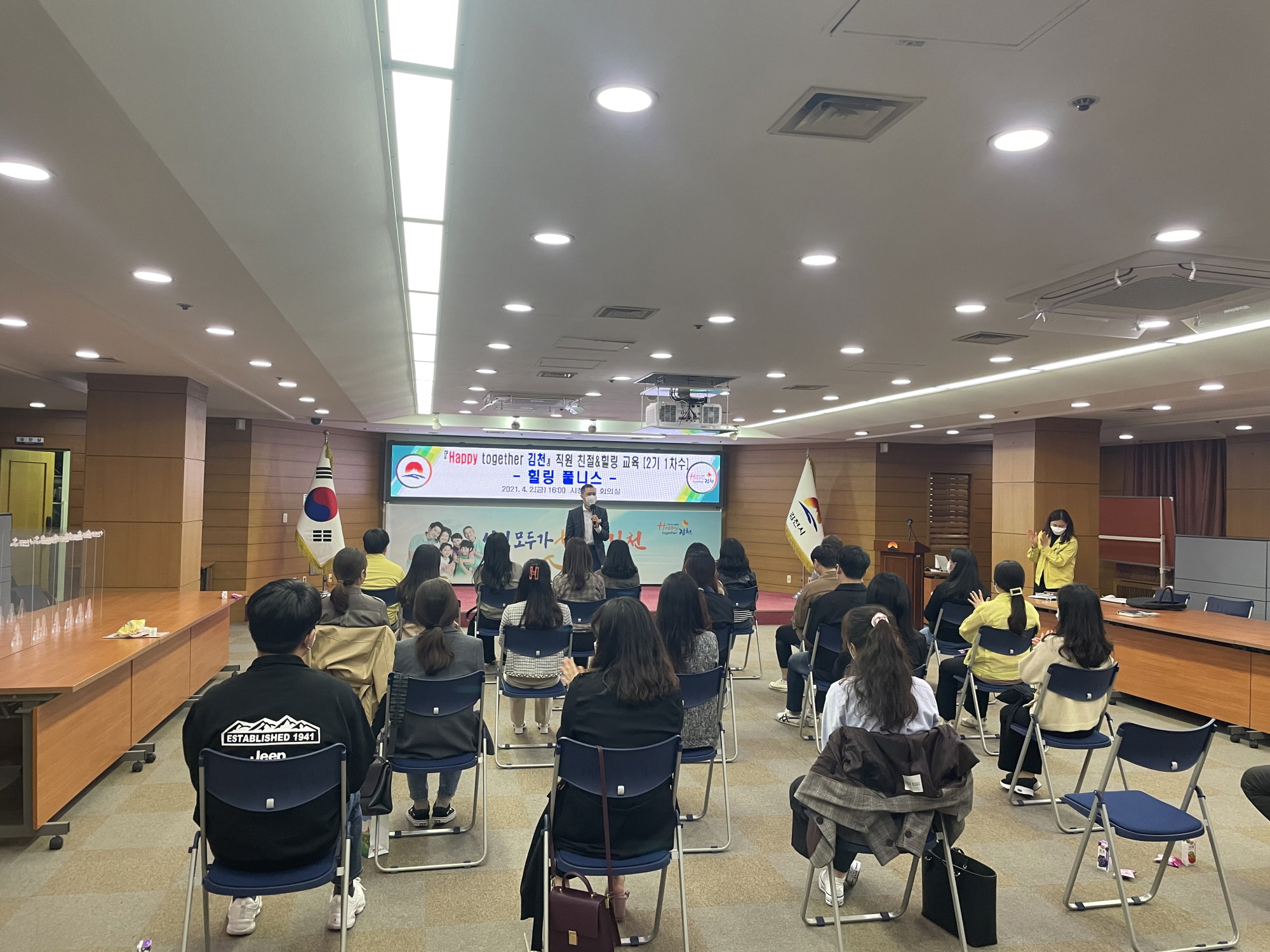 | 김천시(시장 김충섭)는 지난 4월 2일 시청 2층 회의실에서「Happy together 김천」직원 친절&힐링 교육(2기 1차수)을 실시했다.