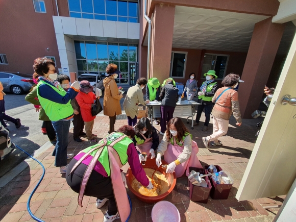 친환경 EM 발효액 무료보급사업은 율곡동 자연보호협의회와 함께 EM 미생물 교육을 통해 발효액 제조방법을 배워 지난 29일 시범 운영을 거쳐 4월부터 매주 160L의 발효액을 제조하여 무료로 보급하는 사업이다.