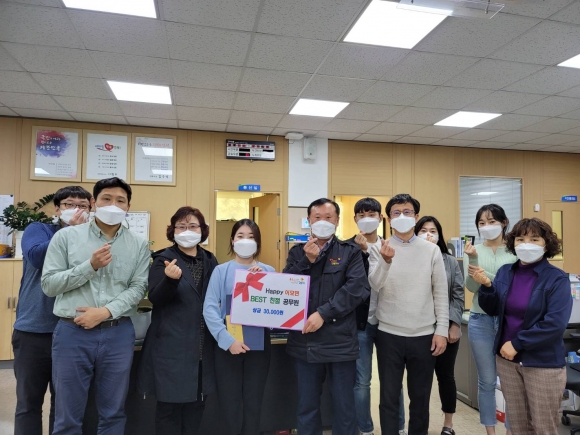 | 어모면(면장 이병헌)에서는 Happy together 김천운동의 일환으로 ‘어모면 BEST 친절공무원’을 선정하고 있다.