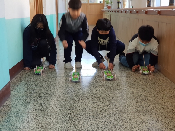 ‘마우스 트랩카’는 만들기가 꽤 어려웠지만, 감았던 고무줄이 풀리는 힘으로 자동차가 움직인다는 것을 알게 되었고, ‘풍선자동차’는 풍선에 넣은 공기가 빠져나오는 힘으로 자동차가 움직이는 원리를 알게 되었다.