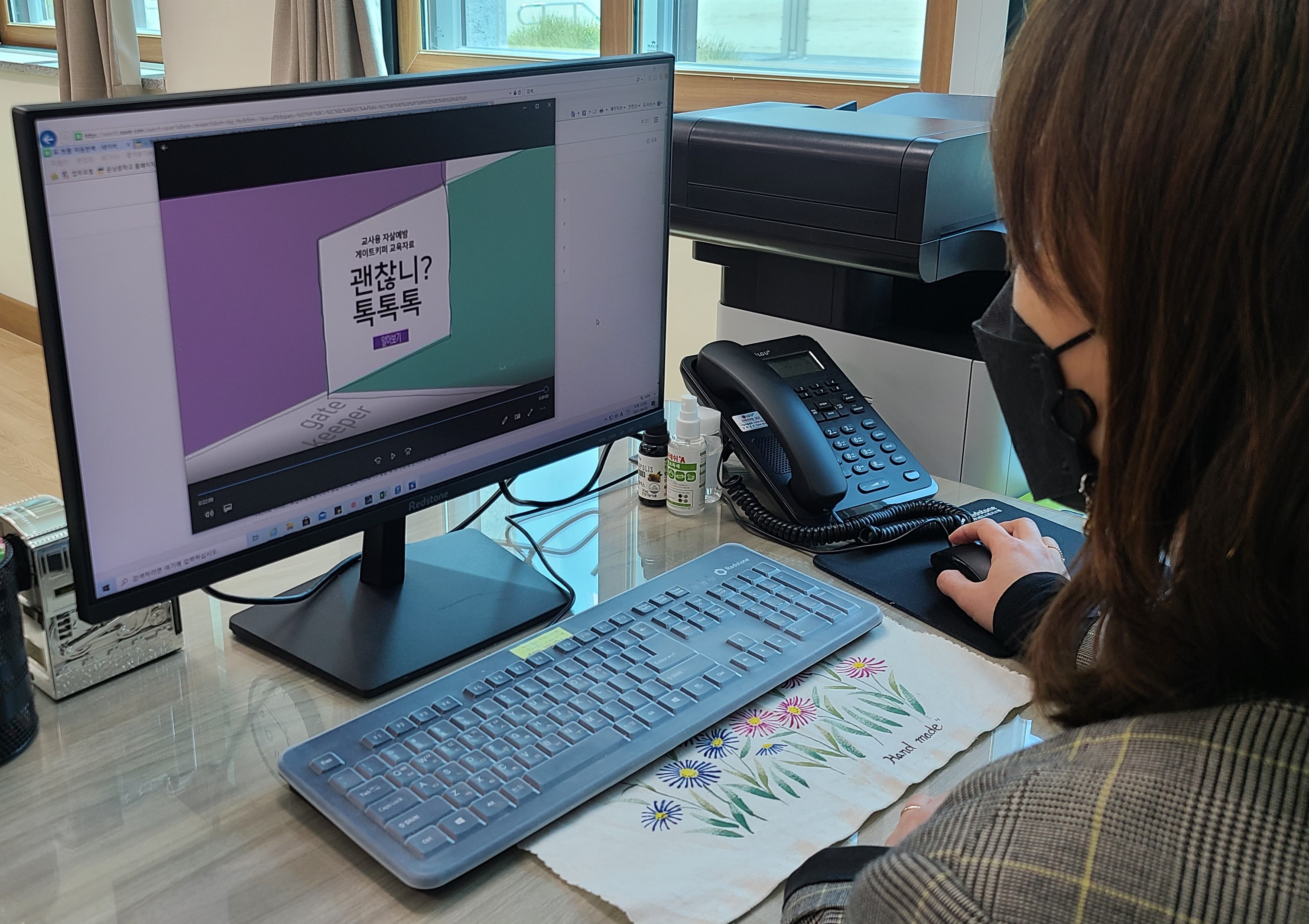 ‘게이트키퍼’란 자살 위험 대상자를 조기에 발견하여 전문기관의 상담 및 치료를 받을 수 있도록 연계하고 위기 상황을 방지하기 위해 지속적으로 관리 및 지원하는 사람을 말한다. 이번 연수는 ‘친구야 사랑한데이’생명사랑 교육주간에 맞춰 비대면으로 실시하였다. 「괜찮니? 톡톡톡」자살예방 게이트키퍼 교육자료를 활용하여 교사가 자살위험이 있는 학생을 만났을 때 도움을 줄 수 있는 구체적인 정보를 담은 동영상 강의로 진행되었다. 이 동영상은‘알아차리기-알아보기-알리기’3단계의 구체적인 정보와 실제 자살위험 상황에서 활용할 수 있는 다양한 예시를 포함하고 있다. 이와 더불어 지난 3월 29일(월)부터 운영되고 있는 생명사랑 교육주간 동안 학생 및 학부모, 교사를 대상으로 생명사랑 캠페인을 실시하고, 생명존중 교육 및 학생정신건강 증진 뉴스레터 등 다양한 자료도 제공할 예정이다.