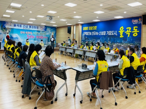 | 김천시 율곡동(동장 이우문)에서는 4월 6일 통장협의회(회장 우선희) 30명이 참석한 가운데 2021년 4월 통장회의를 개최했다.