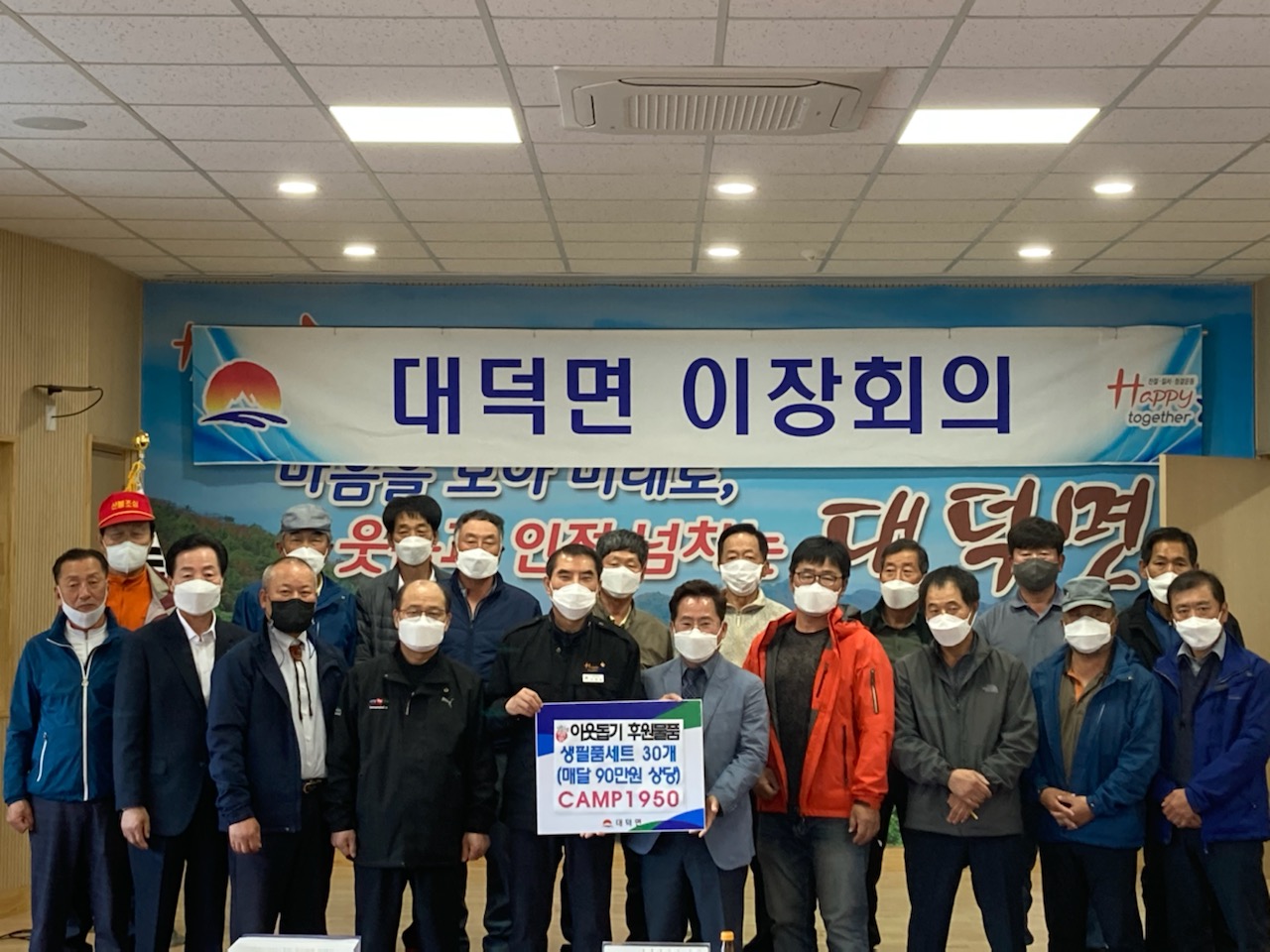 이원용 대덕면장은 “지역사회의 어려운 이웃의 더 나은 삶을 위해 후원품을 전달해주신 CAMP1950 김동영 대표님의 기부활동에 깊이 감사드린다 ”고 전했다. |