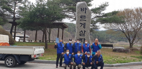 회원 30여명 한들쉼터,감천변 환경정화에 구슬땀 흘려