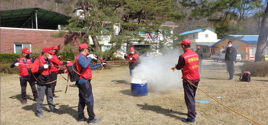 | 김천시 증산면은 4월 8일 산불발생 시 신속한 출동과 더불어 산불진화 장비의 조작과 진화작업을 숙달하기 위하여 산불진화 기계화훈련을 실시하였다.